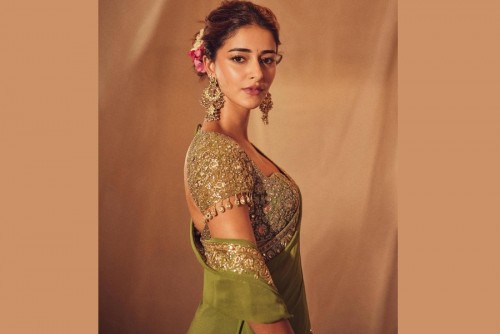 Dressed in a dark leaf green saree with a delicately embroidered golden blouse, adding fresh flowers to her hair and pairing her outfit with classy accessories, Ananya captioned the post as, “It’s starting to look a lot like my favourite time of the year.”