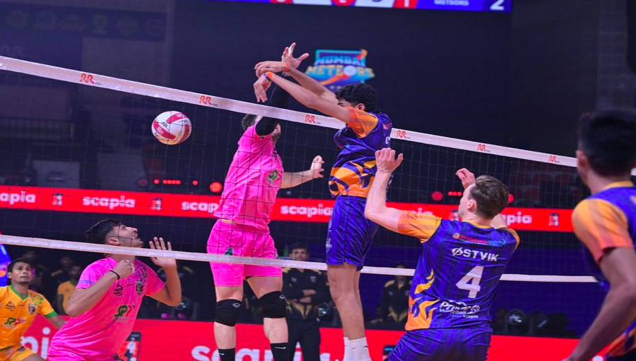 Mumbai Meteors defeated the Chennai Blitz 16-14, 11-15, 15-12, 21-19 in the Prime Volleyball League at the Gachibowli Indoor Stadium, Hyderabad on Monday to book a spot in the semifinals. Mathias Loftesnes was named the Player of the Match.